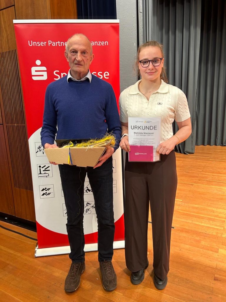 Zum anderen wurde unsere Mathilda für ihre herausragenden sportlichen Leistungen auf internationaler Ebene geehrt – sie wurde in 2025 Vize-Weltmeisterin der Junioren.